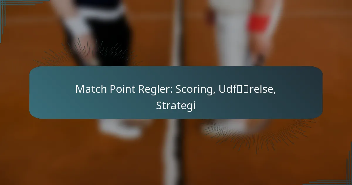 Match point-regler repræsenterer et afgørende øjeblik i konkurrencesport, hvor en spiller eller et hold har mulighed for at sikre sejren med det næste point. Fortrolighed med disse regler er vital for både spillere og tilskuere, da de i høj grad kan påvirke spilstrategier og resultater. Under match point bliver effektive udførelsesteknikker, såsom præcis skudvalg og mental fokus, afgørende for at maksimere chancerne for succes.