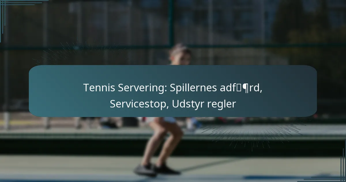 Tennisservering involverer et sæt regler, der regulerer spilleradfærd og sikrer fair play og sportsånd under kampe. Serviceafbrydelser kan opstå på grund af forskellige faktorer, herunder spilleradfærd og udstyrsproblemer, og skal håndteres i henhold til etablerede retningslinjer. Derudover specificerer udstyrsregler standarderne for ketsjere og tennisbolde, hvilket bidrager til konsistens og retfærdighed i spillet.
